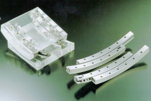NB弧形导轨 曲线型交叉滚柱滑轨及配件因采用精密研磨加工及曲线交叉滚柱珠排,其摩擦抵抗非常微小,且起动摩擦抵抗与运动摩擦抵抗几乎没有差异。所以即使是微量的移送也能保持正确的追随性,是能够实现高精度的曲线运动机构。